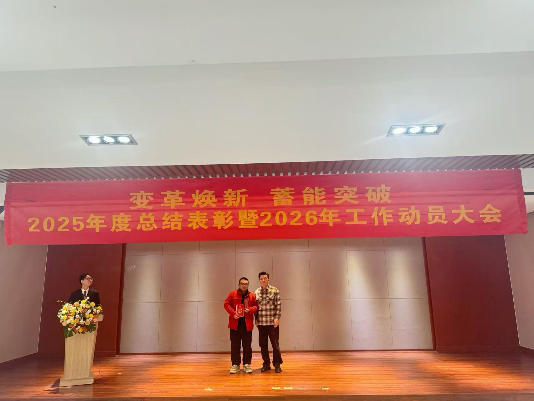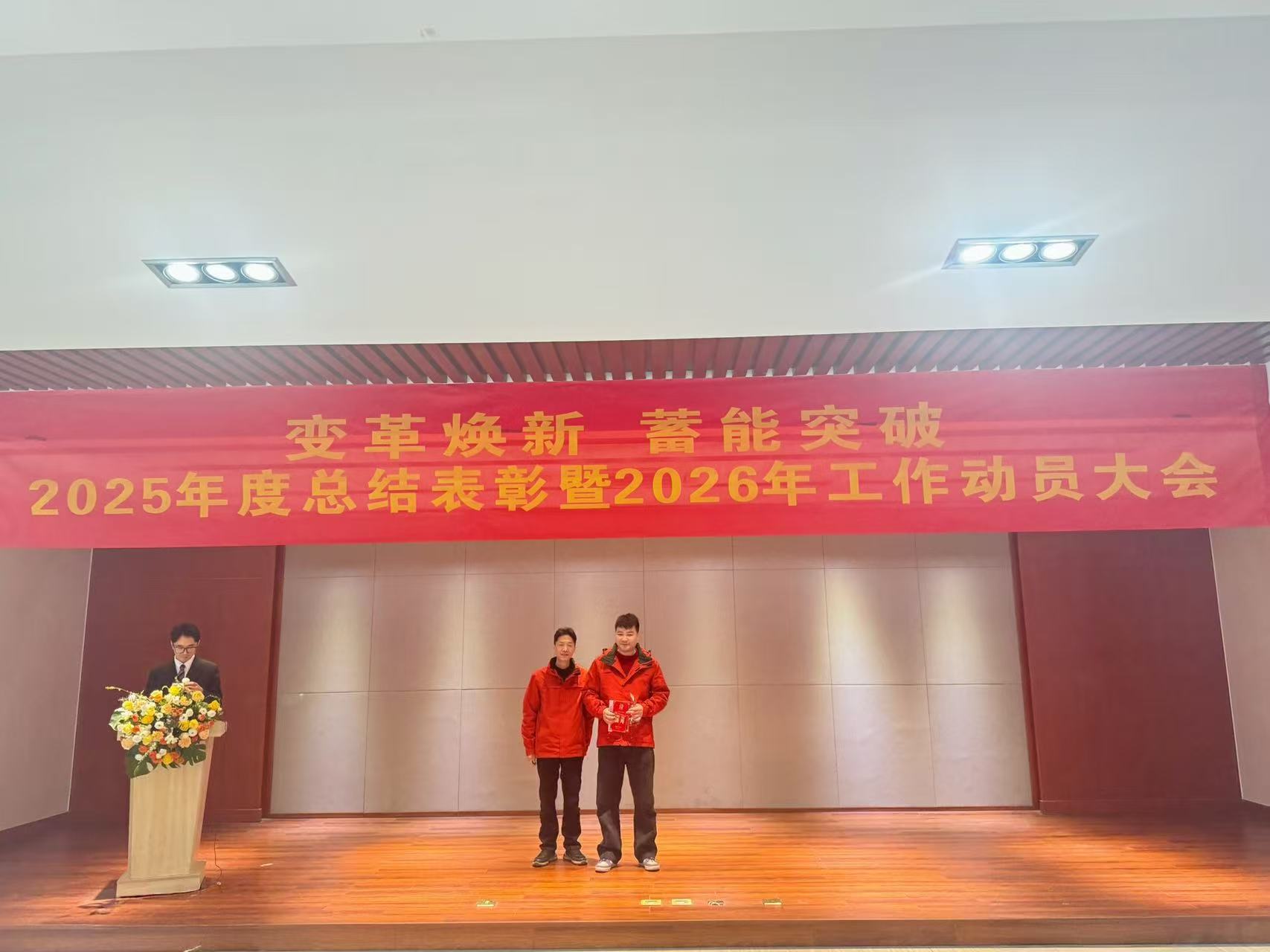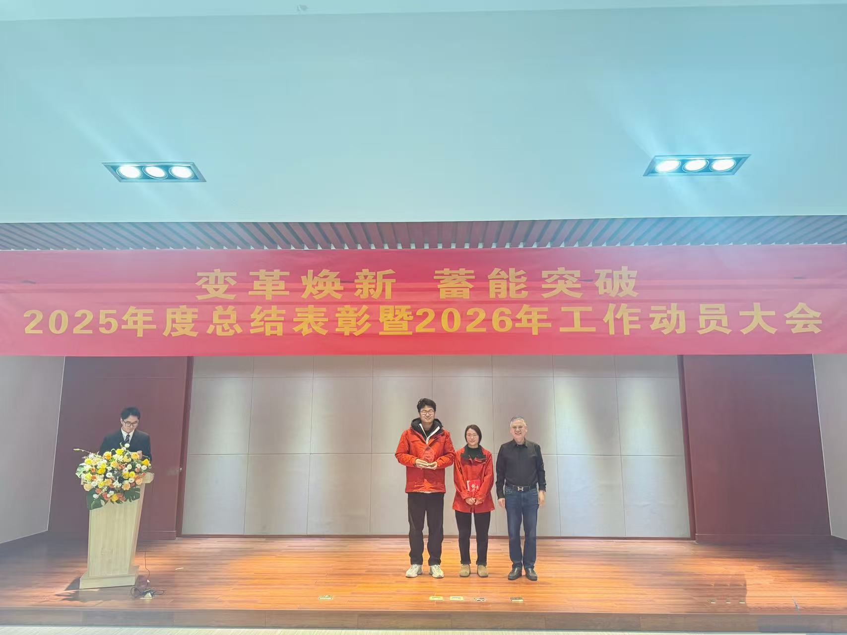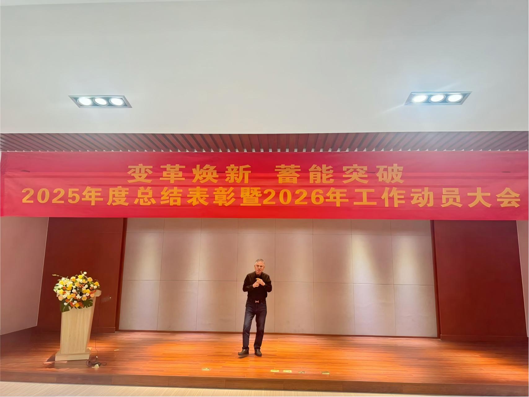 大会伊始,总经理王英杰上台作年度工作报告,总结了2025年取得的成绩和遇到的困难,发布了2026年公司年度工作计划。